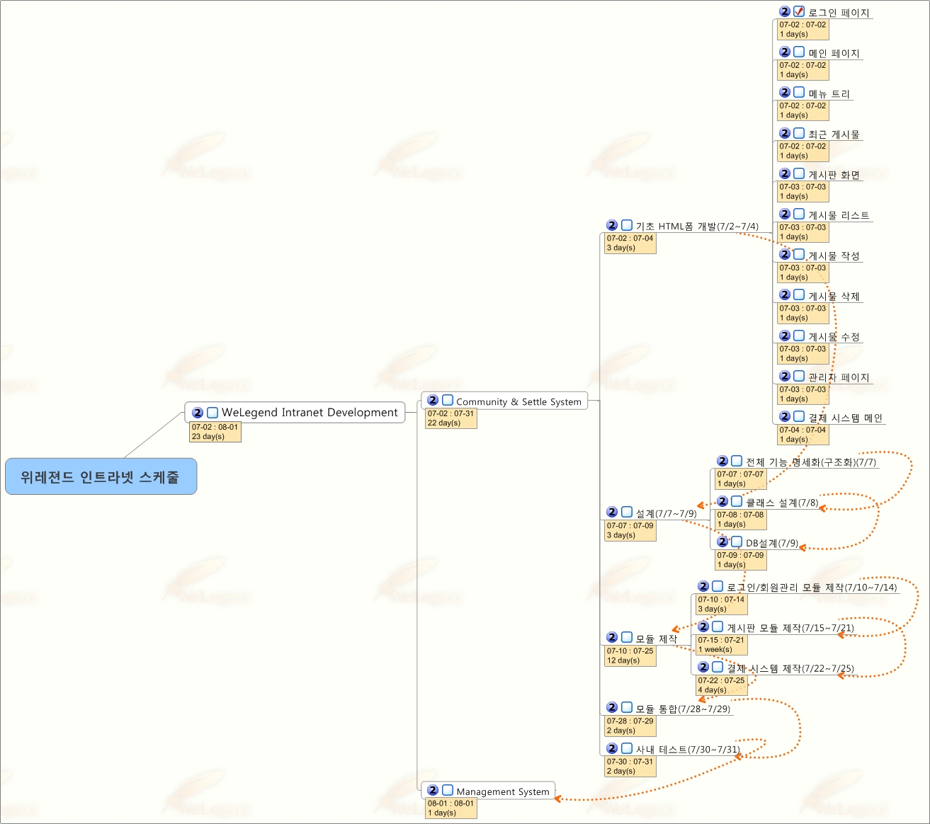 • 팀원은 자신의 스케줄을 일일 체크한다.(현재의 팀원 일간보고와 같음.)